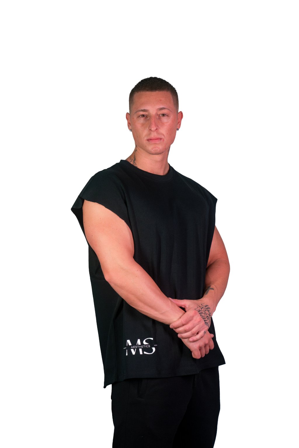 Refresh your wardrobe with this unique oversized sleeveless-look T-shirt!
