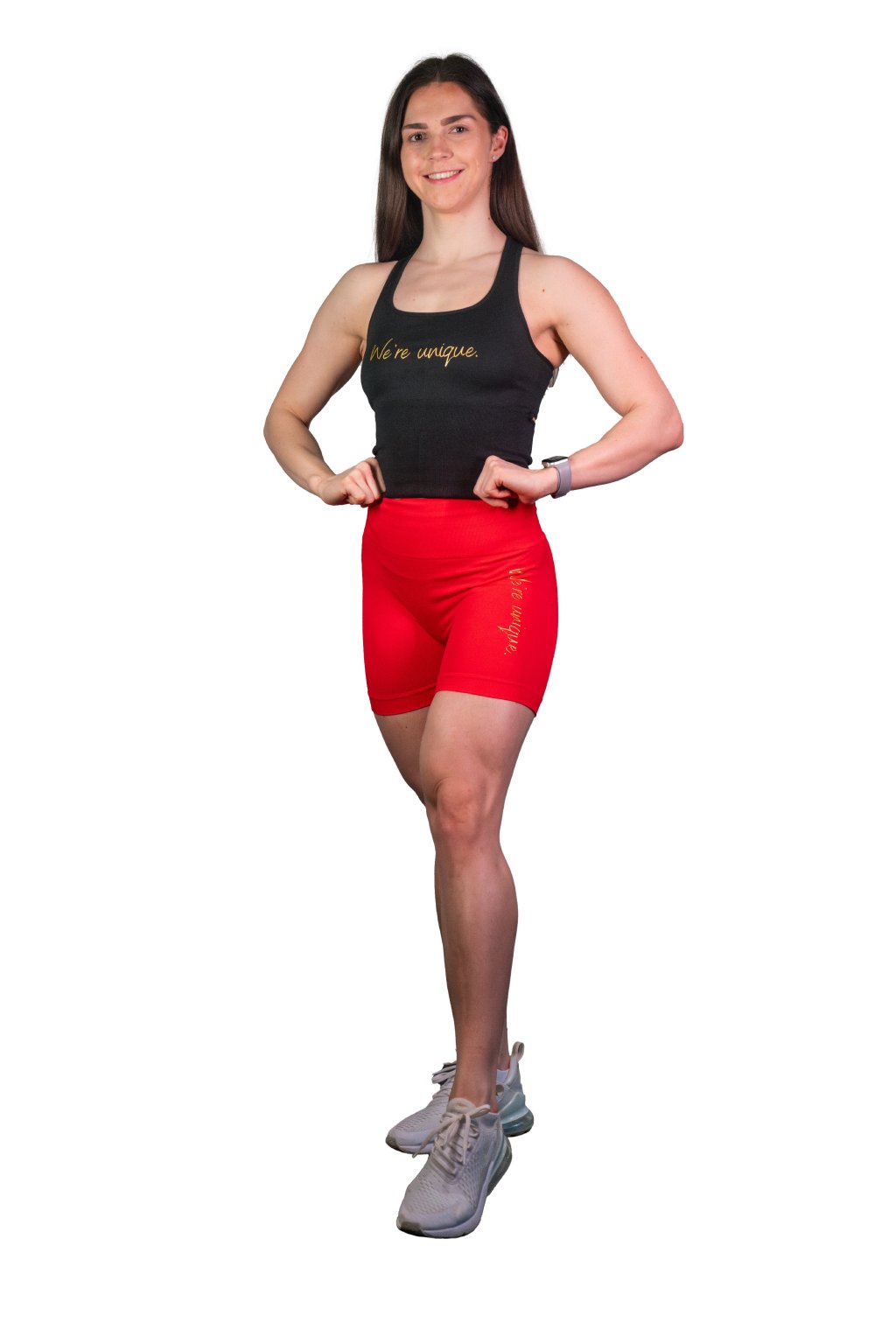 Refresh your sportswear wardrobe with the We’re Unique women’s tank top, combining style and functionality in one. Made from a high-quality, stretchy fabric (90% nylon, 10% elastane), it ensures maximum comfort and freedom of movement. The modern design with a flattering neckline and slim straps enhances your silhouette, while the racerback cut provides excellent ventilation during workouts.