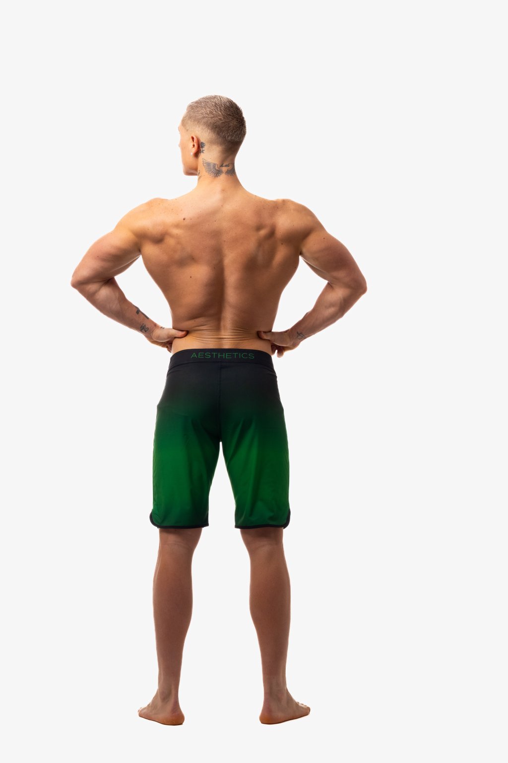 Výrazný fire gradient dodává šortkám energii, dynamiku a agresivní estetiku, která okamžitě přitahuje pozornost rozhodčích i diváků. Střih je navržen tak, aby opticky zužoval pas, podporoval tvar kvadricepsů a nechal vyniknout dlouhé linie stehen — přesně tak, jak to vyžaduje kategorie Men’s Physique.