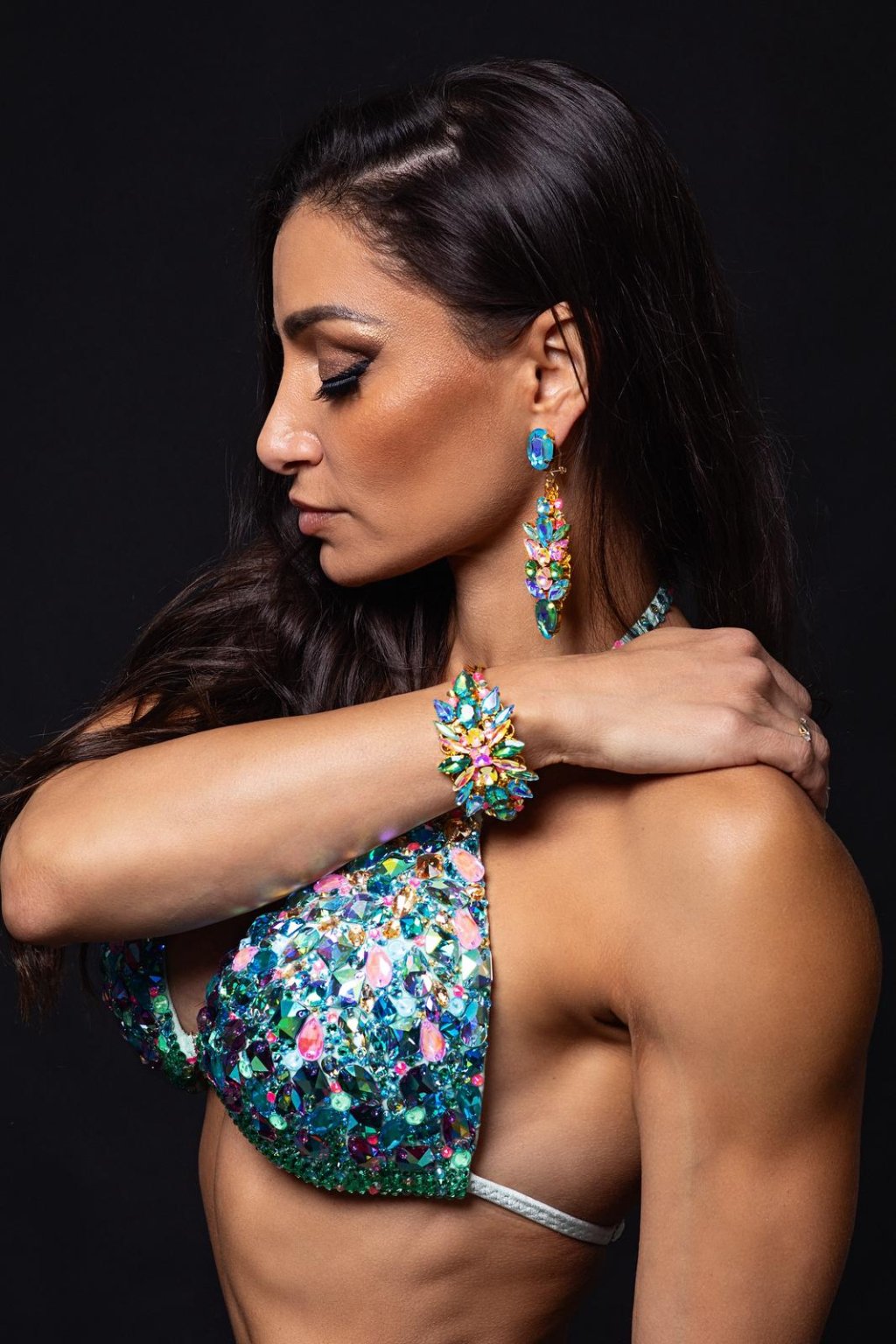 Atlántida je NDG bikini set vytvořený s důrazem na kontrast barev, čisté linie a výrazný stage efekt pod soutěžními světly.